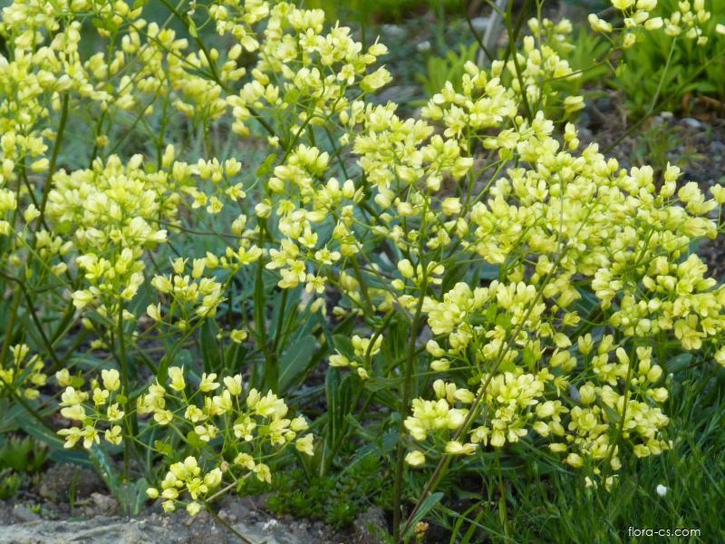 Dvojštítek hladkoplodý - Biscutella laevigataČeleď: Brassicaceae - brukvovité Barva květů: žlutá, Doba kvetení: květen, červen, červenec, Typ květů: počet okvětních lístků 4. | ||