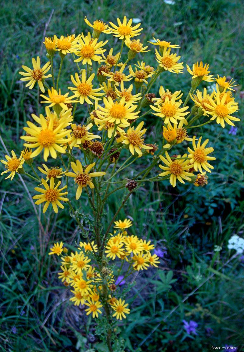 Starček přímětník - Senecio jacobaeaZajímavé je, že kdysi se straček přímětník používal vnitřně k léčbě menstruačních potíží a proti průjmům nebo naopak zácpě. Dnes se silně nedoporučuje ho vnitřně používat, protože při dlouhodobém užívání poškozuje játra a způsobuje rakovinu. Ale používá se k barvení tkanin. | |